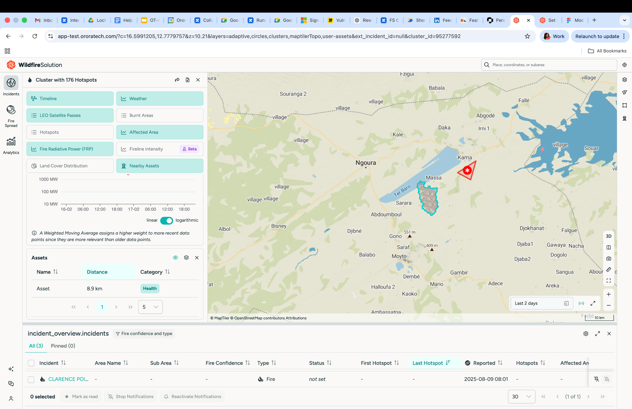 AND - A fire cluster is detected within 10 km of that asset